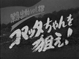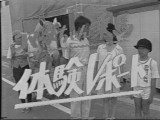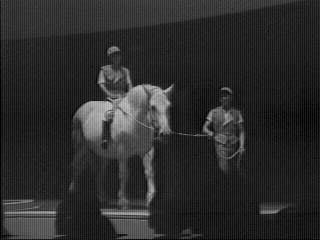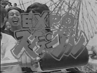 お姉さん〜♪ 本当はメイン通りで乗馬したかったらしいのですが、実際は人通りの少ないところでした。 後ろに富士通の文字が。パビリオンの脇路地でしょうか? それにしても、当時の子供さんってなんて朗らかなのでしょう。馬に乗りたいなんて。いい時代でした(泣)。 | ここでおしまい。テープが終わってしまいました。βテープからの画像ですが、劣化が激しく何故かモノクロになってしまいました。 | ここで使われている画像は、全てオンエアー時の録画テープからの物です。なお、当ページの画像は絶対に転載しないで下さい。 |